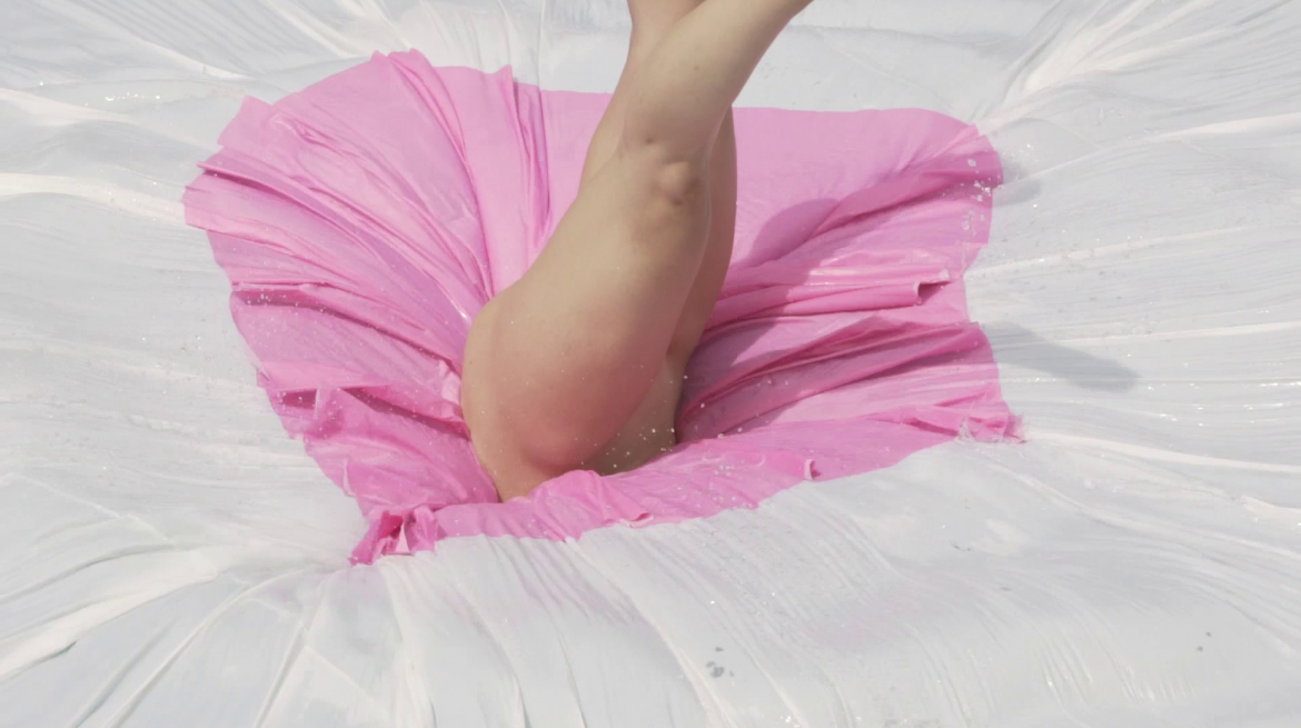 In geometry, torus is a surface of revolution generated by a closed curve rotating around an axis. The torus is said to be the only energetic or dynamic pattern that can sustain itself and that is made of the same substance as its environment. Torontoides is a video performance by the Argentine duo in collaboration with Roco Corbould, that reflects on the body that contains us: the planet, its hemispheres, its magnetic fields and its mysteries. It draws on the individual and collective possibilities of challenging the physical properties between the liquid and the solid, gravity and non-Newtonian surfaces, wondering on how to unite the opposite poles of the planet travelling through an inner passage of the Earth.