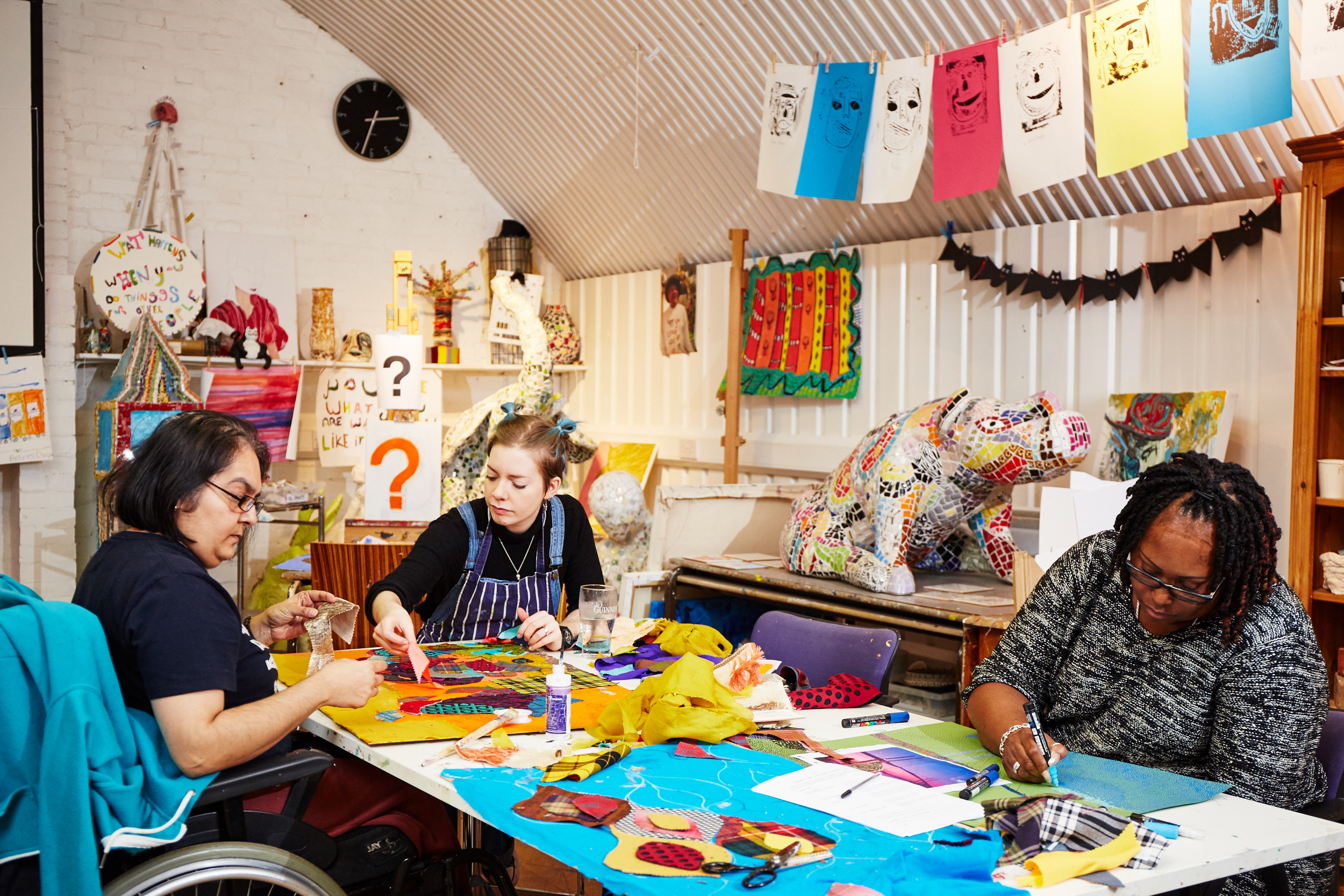 Emily: We are member-led, so what we do each day depends on what our community wants to do. We run music, dance, writing groups, and in our onsite kitchen members prepare meals for the whole team every day. One of our most important projects is our art studio, Submit To Love, where we support members individually to develop their own creative practice. The studio is a busy and popular space, and many of our artists have been members for twenty years, so they have gigantic portfolios of work. We also offer support services like therapies, casework, and groups for family and carers.