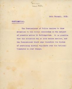 About > History > Historical Documents Collection > Police Letters on Suffragettes January 1913