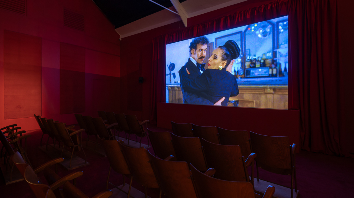 On entry, the visitor encounters a cinematic world of carefully constructed film sets, each drawing from that pivotal moment in the history of cultural, intellectual and avant-garde filmmaking during the 1960s and 70s, particularly across France, Italy and Algeria. A selection of films that have inspired this exhibition can be seen for free every day in the Zineb Sedira Presents… screening programme.