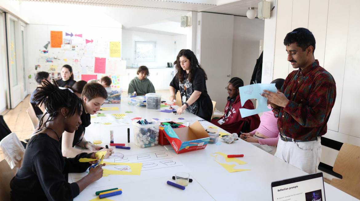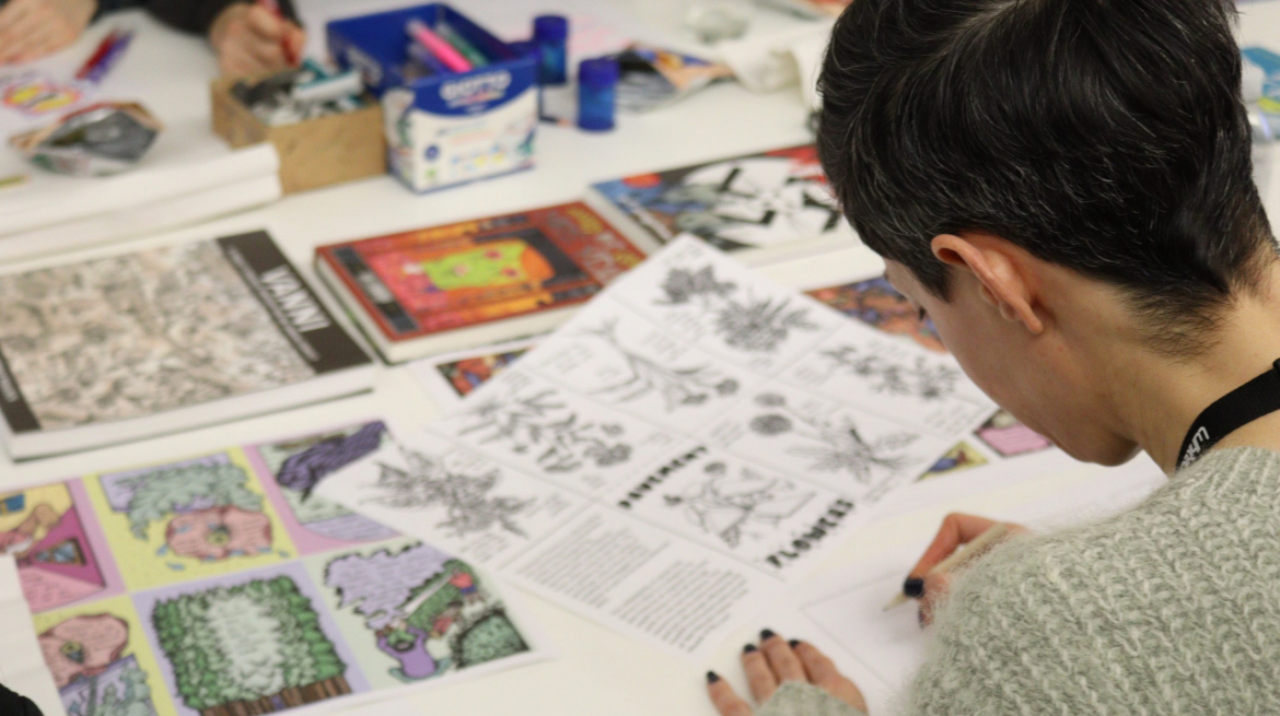 The collaboration kicked off with a series of workshops delving into Mohammed’s practice, focusing in on sequential storytelling techniques behind his zine making and writing work, and approaches to narrative painting. Through time spent drawing, collaging, and chatting, the group identified the themes they wanted to explore through the collaboration: collective experience and memories, meaningful spaces for us, and how you create a sense of home and sanctuary.