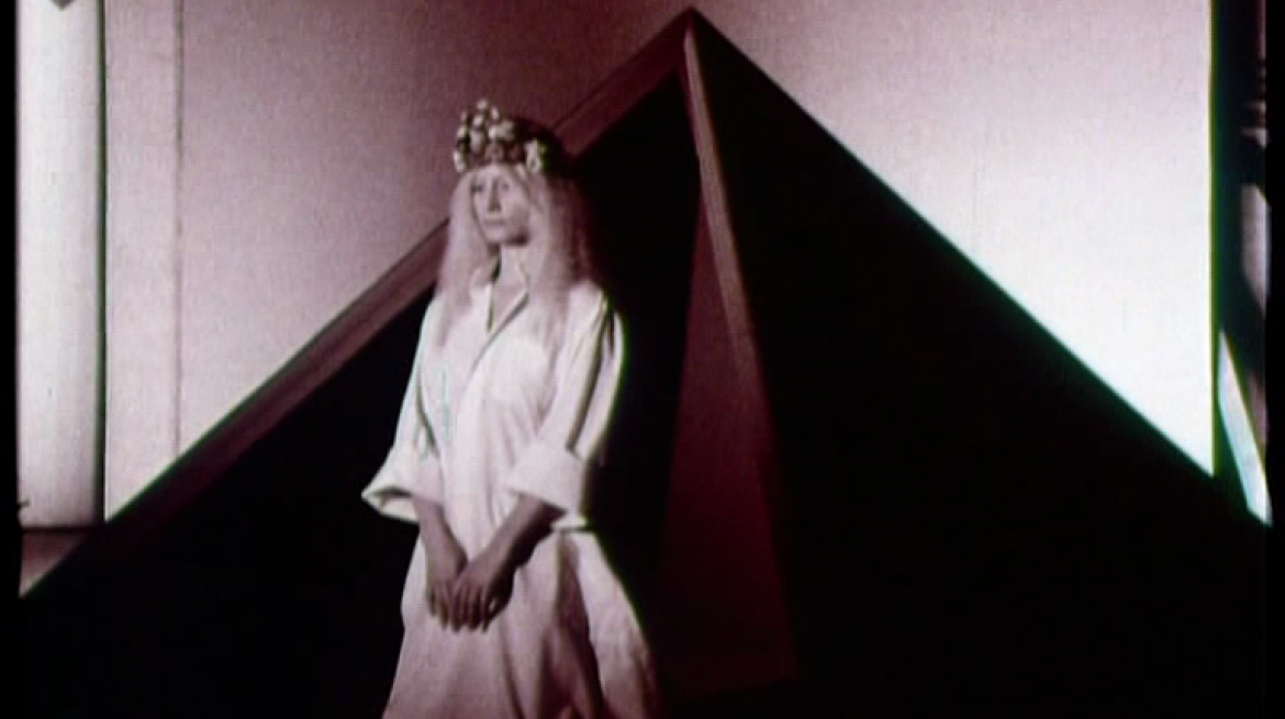 At the end of the 1970s, the artist’s work witnesses a change and enters the spheres of mysticism, mythology and cosmology. Yet, the body continues to function as her primary medium and the performances were seldom performed directly for the camera, although the awareness and necessity of film documentation was obvious for the artist. The first of a cycle of those seances, titled Dreaming, was conducted in 1978. The actions adopted different forms – Natalia LL was asleep in the presence of the viewers or only with the camera as a witness; she was also experimenting with sleeping in the pyramid. Those seances stemmed from the pursuit of reaching the subconscious – the artist very often noted down her dreams immediately after waking up.