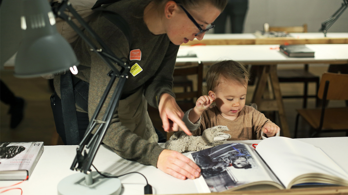 Assistant Curator Candy Stobbs takes parents and their babies on a tour of the exhibition, Mark Dion: Theatre of the Natural World.