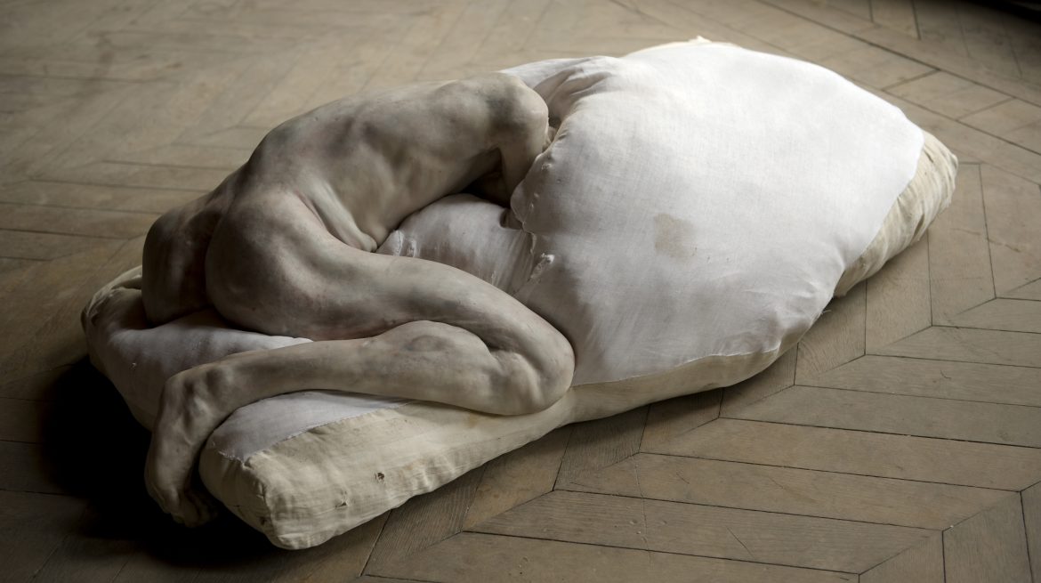 Berlinde De Bruyckere, Quan 2009-10, wax, epoxy, iron, cushion, 50 × 155 × 80 cm. Courtesy of Hauser & Wirth © Berlinde De Bruyckere. Photo: Mirjam Devriendt