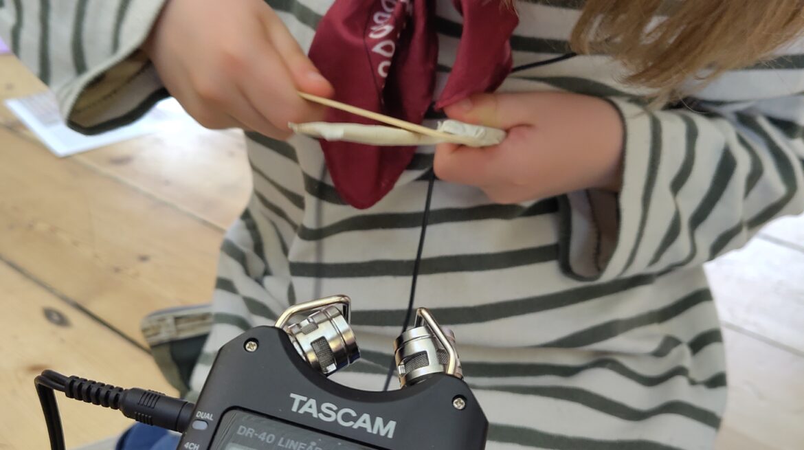 ‘Perform the props’ in the exhibition to see what foley sounds they can make and explore how you can match them to a moving image and experiment mixing materials and their sounds to make your own foley prop!