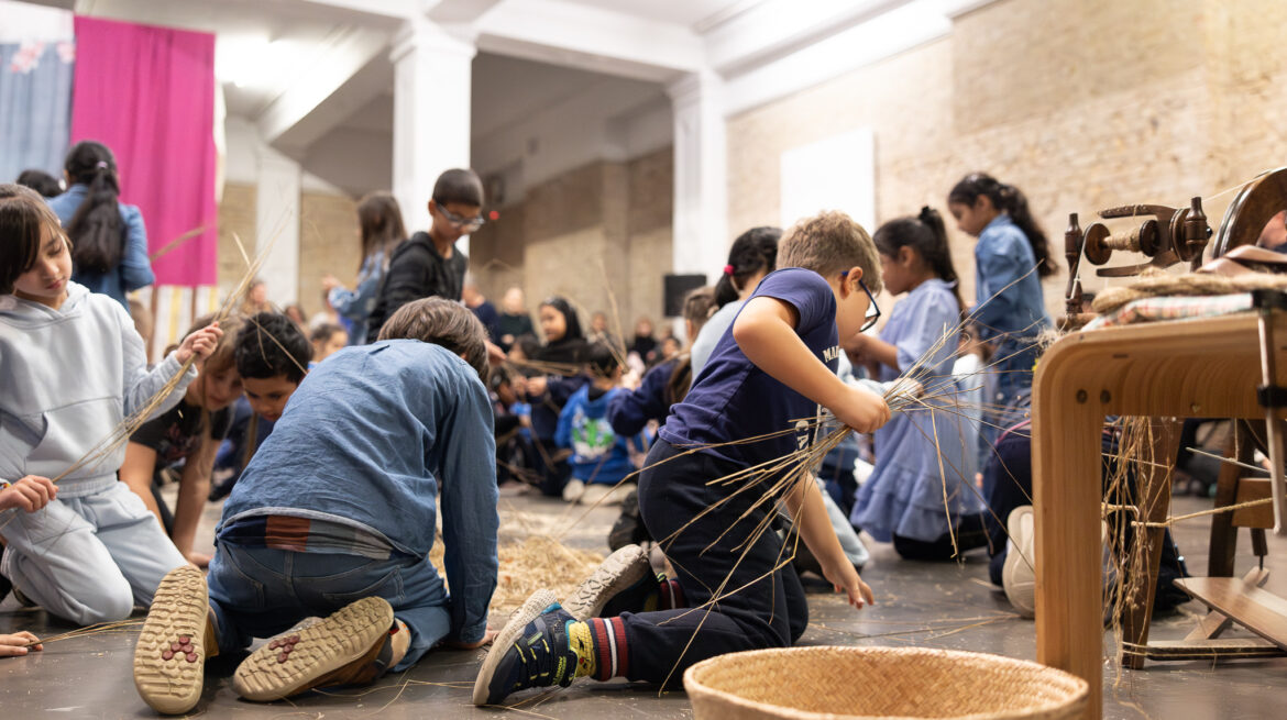 The Flax Exchange performs Flax Suite, a set of making actions exploring folk cultures and labour politics of traditional textile production.