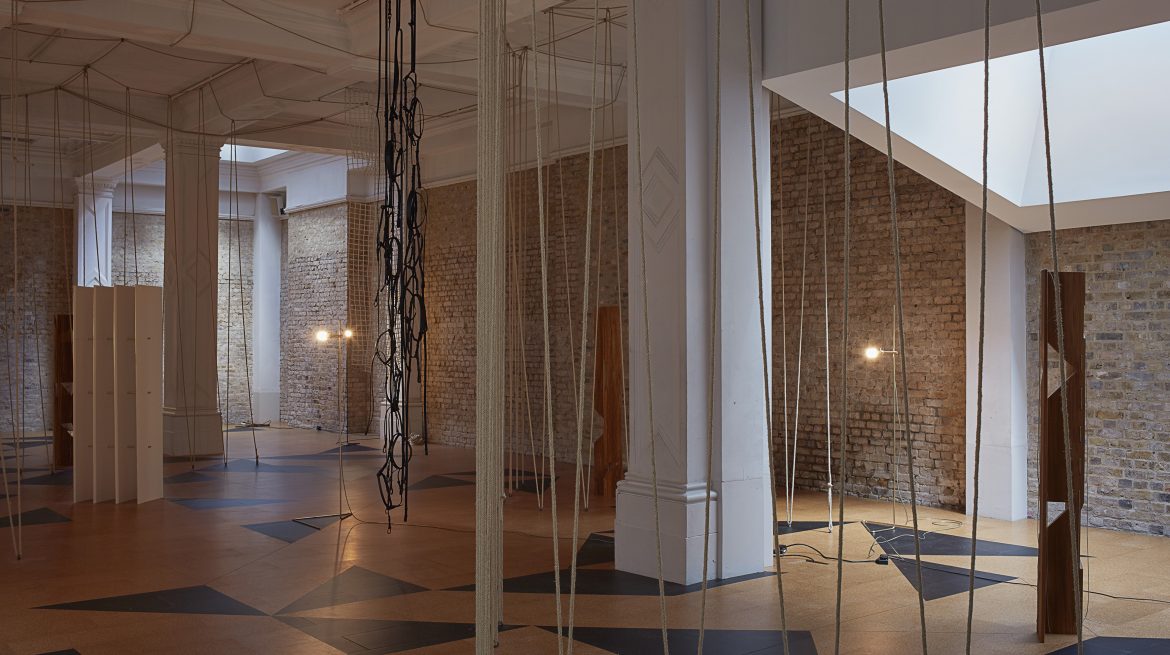 Straight lines and flat planes morph into looping and twisting volumes and sculptural reliefs in the new commission by Leonor Antunes.