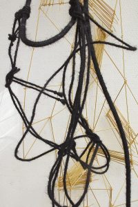 Random intersection, 2017 [detail] Horse hair and human hair. Mary, 2017 [detail] Brass. Photo: Nick Ash