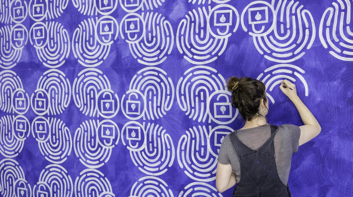 Navine G Khan-Dossos’ installation in Toynbee Hall’s newly renovated historic Ashbee Hall comprises a series of vivid ‘aniconic’ paintings that she has created during the run of her current exhibition at The Showroom. The paintings take as their starting point a number of the logos produced for The Prevent Strategy, the government’s counter-terrorism policy. The work embodies research from the exhibition, which has become a site to reconsider this contested policy. Also on display is a logo produced in collaboration with Whitechapel Gallery’s Youth Forum, Duchamp & Sons.