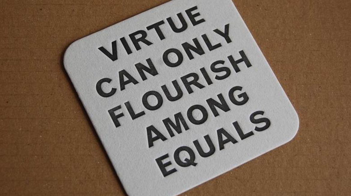 Six hundred songs with a feminist agenda are collated in A Feminist Jukebox of People Trying to Change the World (2018) by artist Ruth Ewan, and available to play in the Victorian pub The Bell. Ewan also presents two newly commissioned ornate pub mirrors created by Artisan Artworks, a traditional sign writer based near Glasgow, which feature texts chosen by Ewan that channel the words of Sylvia Pankhurst and Mary Wollstonecraft. The mirrors are displayed at The Bell and the Golden Heart, where you can also find Ewan’s specially designed beer mats.