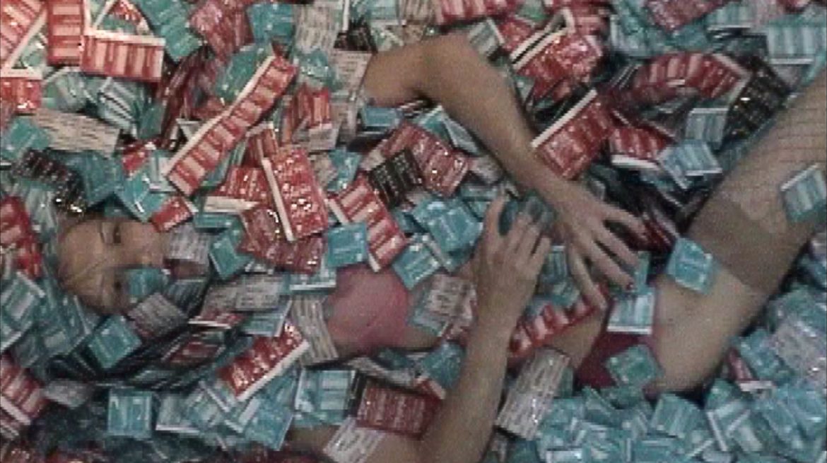 Soi Meme translates to ‘for oneself.’ Inspired by Barbara Rubin’s Christmas on Earth M.M. Serra, Abigail Child and Peggy Ahwesh recreate a performance by Goddess Rosemary that featured Maria Beatty performing a female ejaculation in an art gallery at The Gay, Lesbian and Bisexual Experimental Film Festival in the 1990s, restaging the performance for the camera at Goddess Rosemary’s apartment.