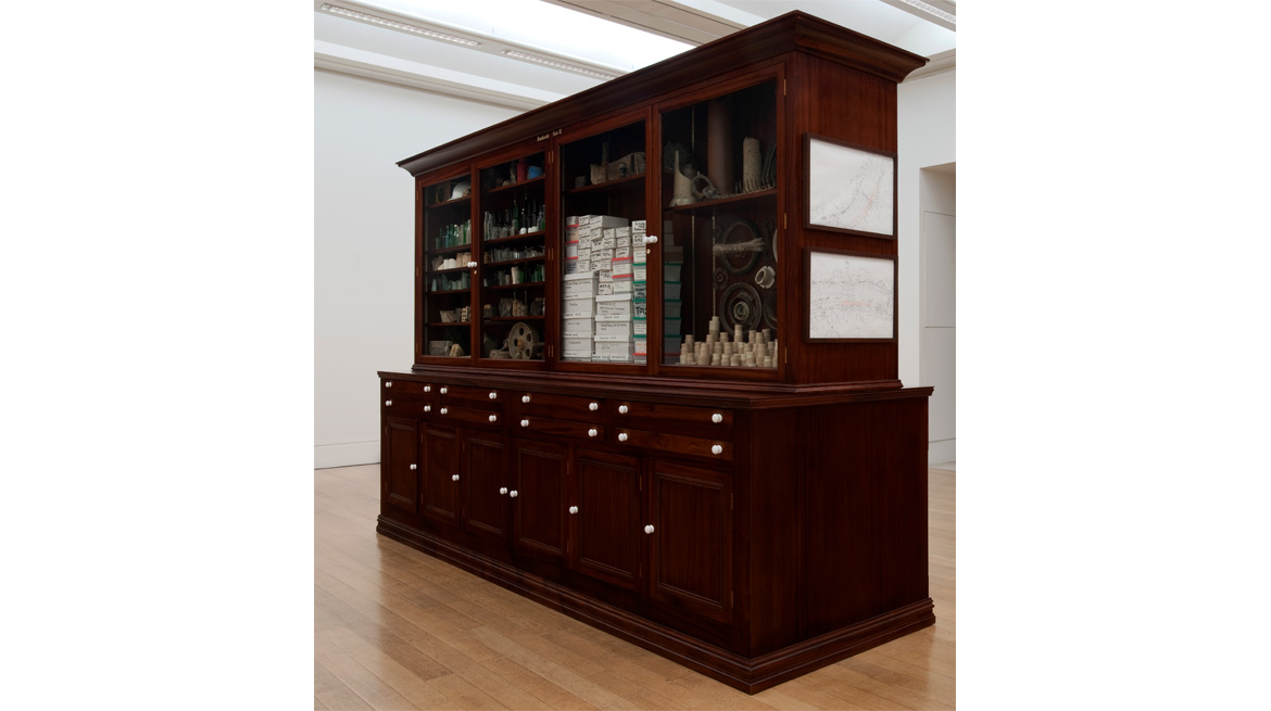 Tate Thames Dig 1999 Wooden cabinet, porcelain, earthenware, metal, animal bones, glass and 2 maps 266 x 370 x 126 cm © Tate, London 2017