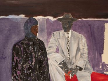Andrew Pierre Hart lives and works in London. He describes his work as focussed on ‘the symbiotic relationship between sound and painting’, while also incorporating aspects of sculpture, mural-making, installation, language, performance and film. Hart spent the first part of his career as a DJ and musician running the record label Deepart, which specialised in electronic music and Detroit-style techno. Musical techniques such as improvisation, ‘rhythmic research’ and an interest in the way sound resonates in space now infuse his multidisciplinary art practice. Recent figurative paintings have drawn on Western art historical precedents while also representing real and mythic figures that relate to diasporic experiences in London. His abstract tapestry-like compositions draw on sources as diverse as the hand-painted murals of the Gurunsi people in Burkina Faso, Nigeria; Yoruba divination codes; graphic musical scores; and digital coding.