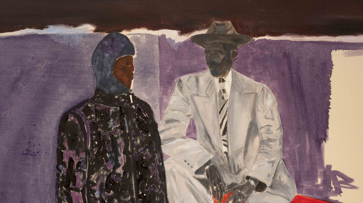 Andrew Pierre Hart lives and works in London. He describes his work as focussed on ‘the symbiotic relationship between sound and painting’, while also incorporating aspects of sculpture, mural-making, installation, language, performance and film. Hart spent the first part of his career as a DJ and musician running the record label Deepart, which specialised in electronic music and Detroit-style techno. Musical techniques such as improvisation, ‘rhythmic research’ and an interest in the way sound resonates in space now infuse his multidisciplinary art practice. Recent figurative paintings have drawn on Western art historical precedents while also representing real and mythic figures that relate to diasporic experiences in London. His abstract tapestry-like compositions draw on sources as diverse as the hand-painted murals of the Gurunsi people in Burkina Faso, Nigeria; Yoruba divination codes; graphic musical scores; and digital coding.