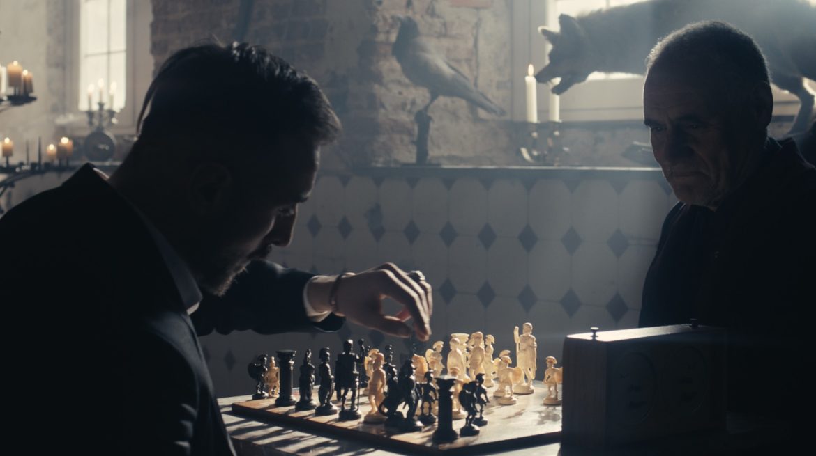 Desire Lines (Tarot & Chess) (2016) takes inspiration from universal patterns of human behaviour observed in Italo Calvino’s book The Castle of Crossed Destinies (1973). Ergin Çavuşoğlu’s film opens on a group of mute travellers gathered in a castle, whose stories and destinies are recounted by a central figure, The Castle Keeper, as he reads an unfolding set of Marseille tarot cards. The interpretations of the cards allude to classic tales such as Faust, Oedipus, and Shakespearian narratives such as Hamlet, Macbeth and King Lear, involving the central figures of The Knight, The Maiden and The Alchemist. After the protagonists have concluded the telling of their individual stories, they are challenged by the Castle Keeper to a game of chess, perhaps their last chance to alter their destinies.