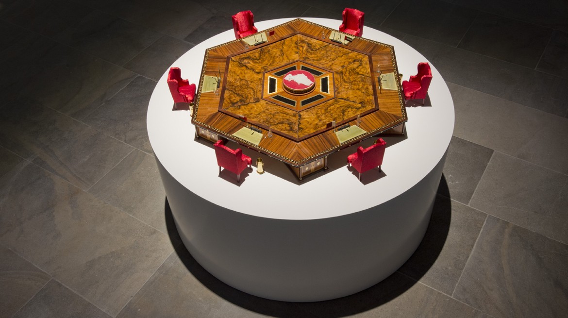 The display Imperfect Chronology: Mapping the Contemporary II focuses on the theme of mapping geographies, examining the notion of statehood and exploring how artists engage with the rapidly expanding cities of the Arab region.