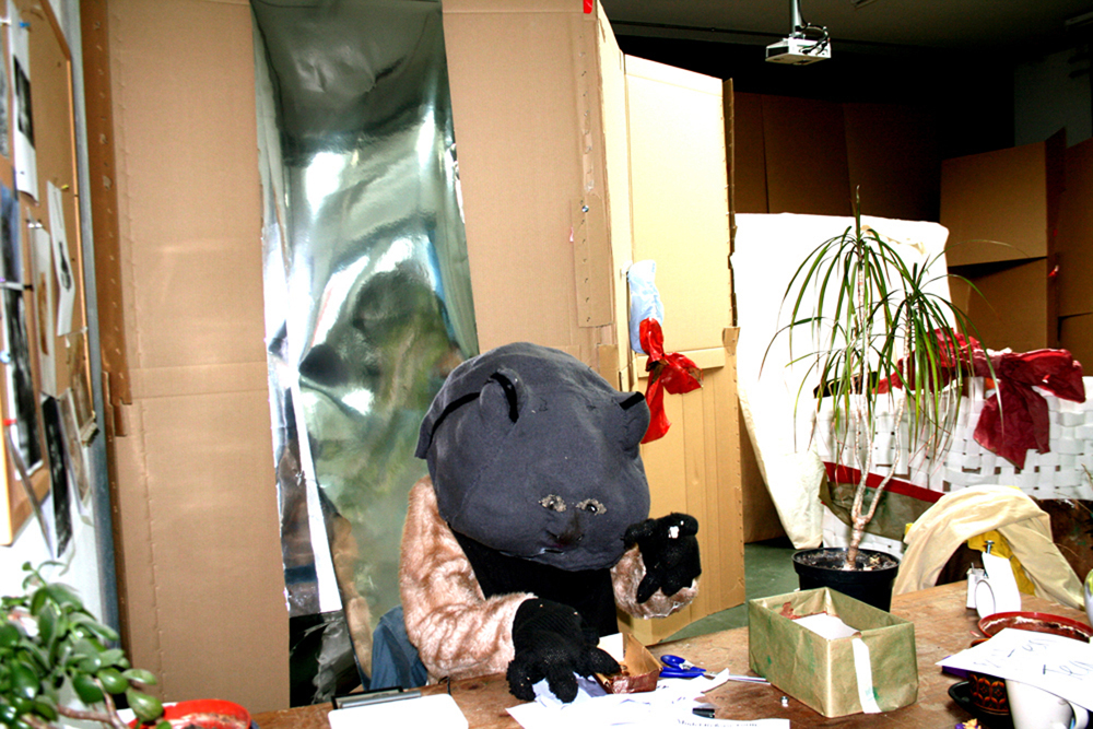 Kitten receptionist (from the performance ‘Kittens in a basket’ ) Spike Island 2014 either Kit Poulson / Milo Newman / Eilis Kirby/ Marie Toseland