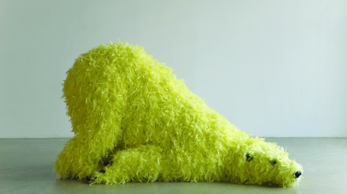 A bear with soft fur made of fluffy chicken down forms the central work in the final display from Italian-based Collection Sandretto Re Rebaudengo. Have you seen me before? (2008) by Paola Pivi plays on our expectations and feelings, erasing the boundary between reality and fiction.
