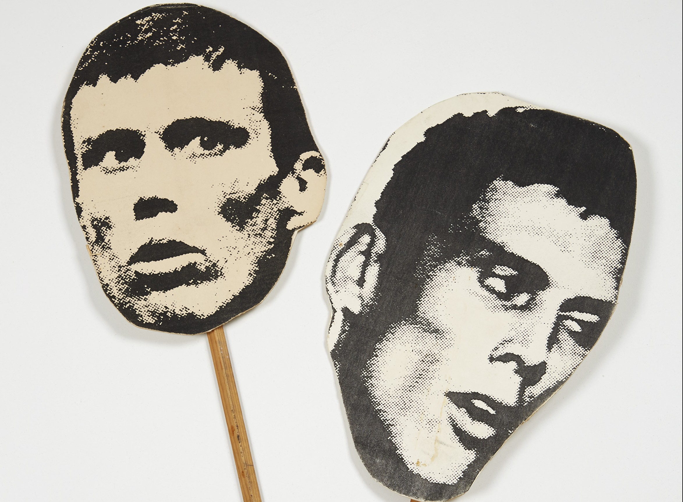 Card and wood objects depicting ‘Bez’ from the music group ‘The Happy Mondays’ produced by artist Jeremy Deller for an exhibition at artist Peter Doig’s studio in 1994.