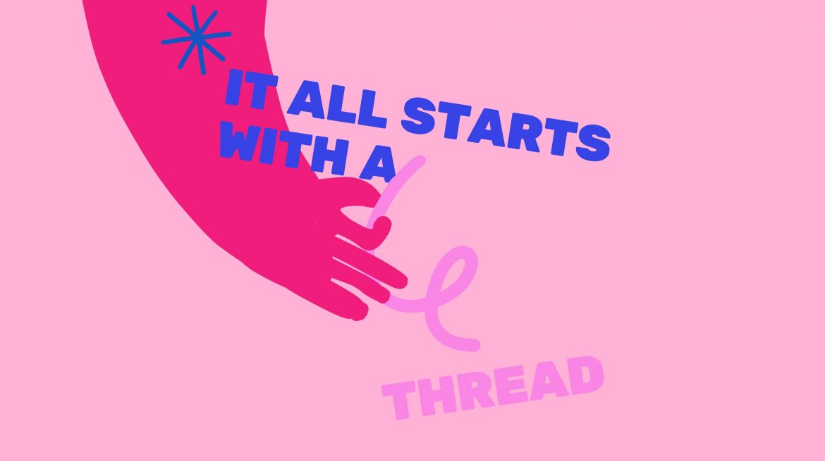 It All Starts With a Thread is curated by Caroline Ip, Dearbhla Hanney, Erin Saunders, Eva Williams, Jane Ross, Melika Rafiei, Nastia Svarevska, Nicola Cosford, Rebecca Russell and Yulia.i.
