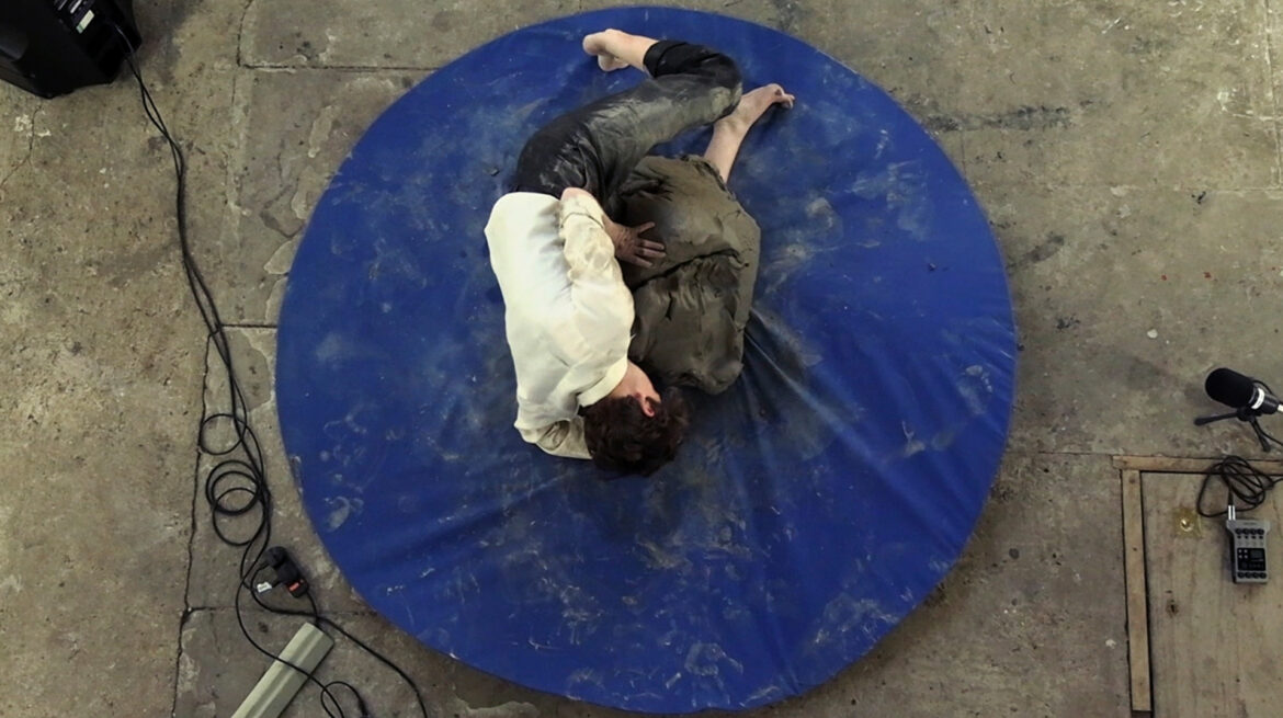 Feeling the Blues is a work in three movements performed over three months by Roshana Rubin Mayhew. In each, a bodyweight of clay is wrestled through a score of 12 wrestling holds. The sounds generated are mixed live during each movement. In Movement I, the clay is malleable – held, stretched and body slammed through each hold. For Movement II, the dried bodyweight of clay, hardened and resonant with how it was held, is broken down through the rub and friction of the body. Movement III gathers up the pieces. Through grinding and wetting, the remains return a malleable bodyweight of clay, rocked n rolled into motion. Feeling the Blues investigates how to tune into and creatively hold weight and the weighty. Embracing the indeterminacy of live performance, it taps into and feels-through its rhythms, rubs, and sweet spots. The sounds generated are mixed live during each movement by music producer Wayne Adams.