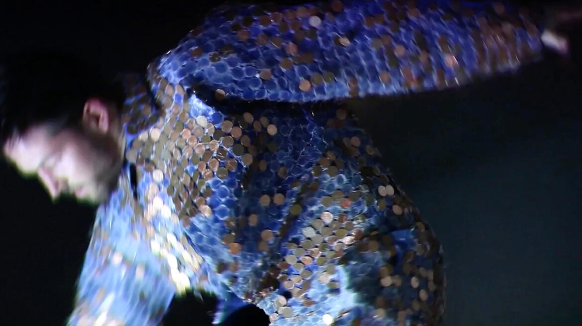 Breaking a dance is a new live work by William Mackrell in which he attempts to jump and move under the colossal weight of penny coins glued onto his overalls. The coppery outfit glistens in a visual overload reminiscent of the sparkling embroidered suits of the Pearly Kings and Queens of London’s East End. Surrounded by fluorescent light bulbs, flickering in a natural state of breakdown, the performance is flooded with the sounds of spilling coins. Sourced from artist studio associations across London, the obsolete bulbs echo the precarious temporality of London as an environment to live and work in. As the performance unravels, these all-consuming desires and illusions of capitalism drive Mackrell’s body into inescapable exhaustion.