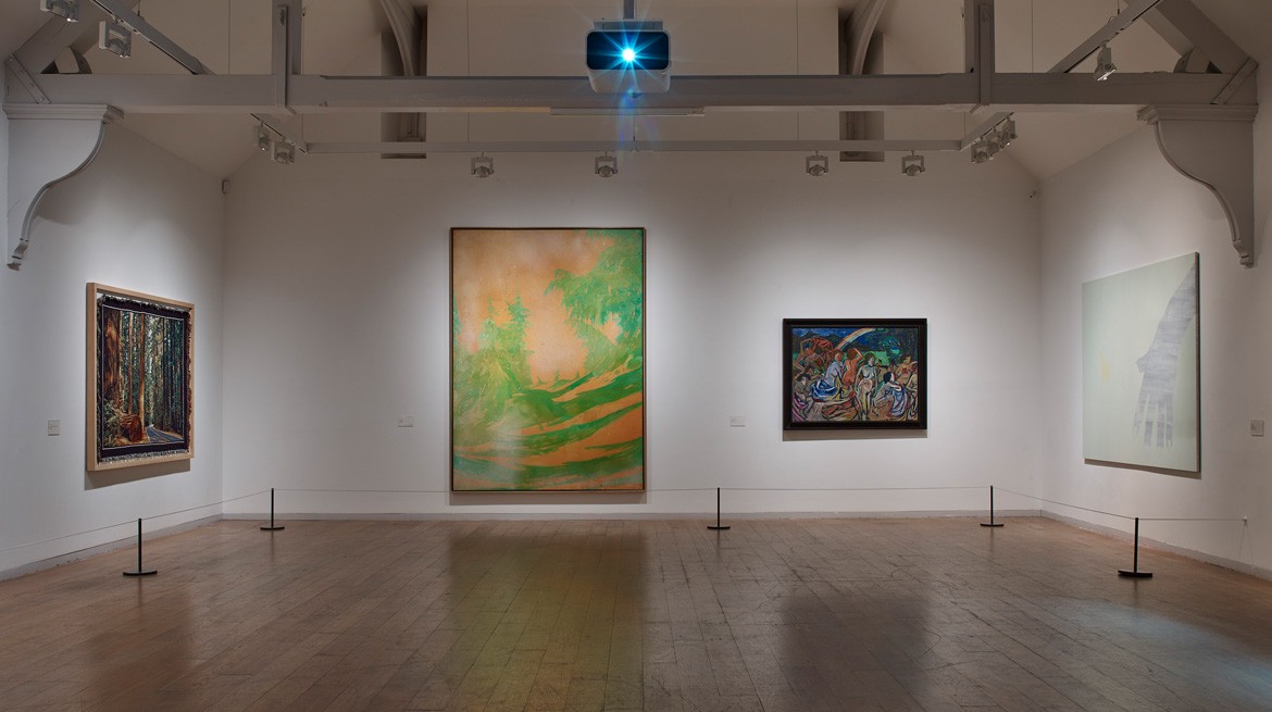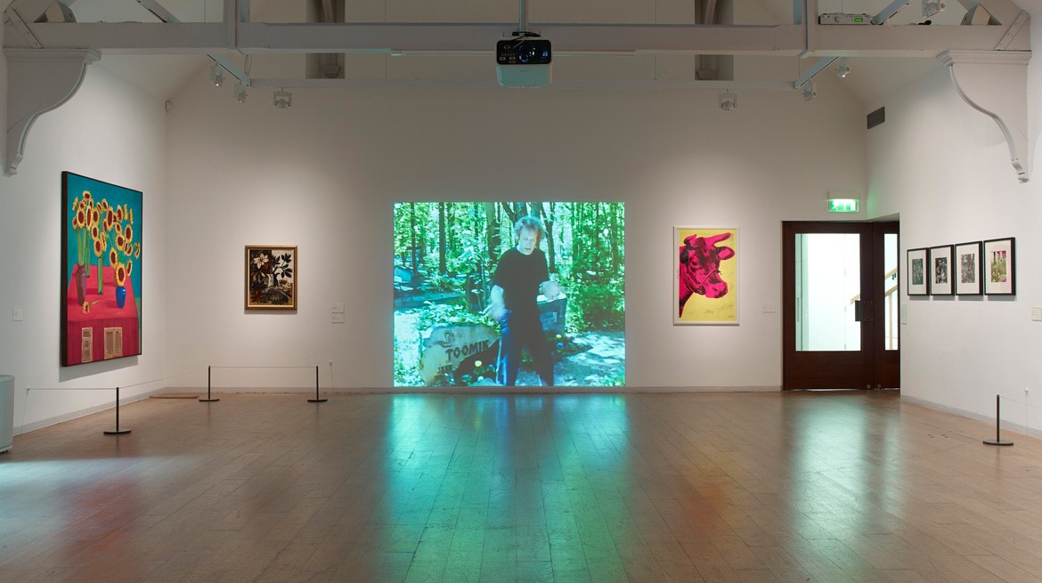 Highlights include David Hockney’s 30 Sunflowers (1996), a vibrantly coloured oil on canvas, and Peter Doig’s large-scale painting Green Trees (1998) depicting an imagined forest. Also featured is a video by Estonian artist Jaan Toomik, Dancing with Dad (2003), which shows the artist dancing in a sunlit woodland where his father was buried and Andy Warhol’s brightly coloured screen-print of a cow.