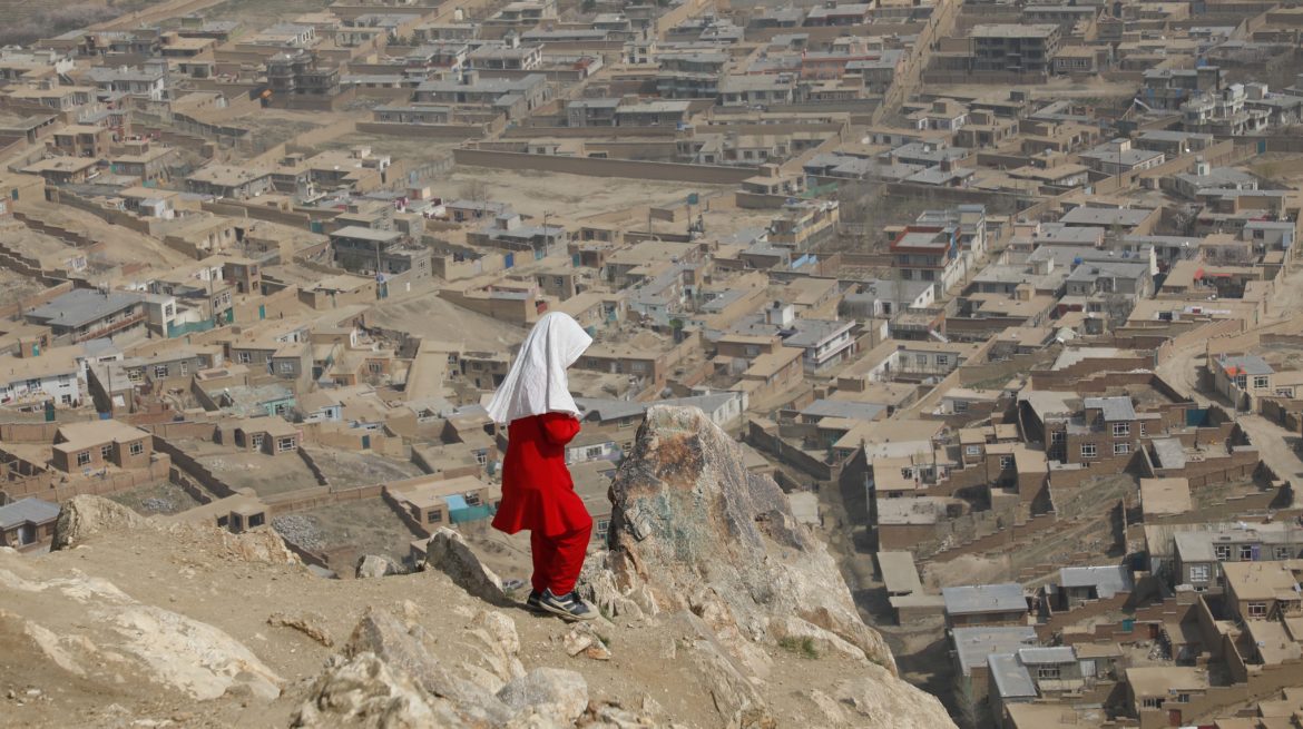 A young girl dreams of being able to play ball games in Safed Sar (2019) by Atefa Hesari (b.1974 Afghanistan). She ties and unties knotted cloth, in the hope of reclaiming imagination and craft in a patriarchal world.