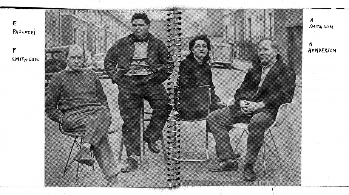 Group 1: Theo Crosby, William Turnbull, Germano Facetti, Edward Wright. Group 2: Richard Hamilton, John McHale, John Voelcker. Group 3: J.D.H. Catleugh, James Hull, Leslie Thornton. Group 4: Anthony Jackson, Sarah Jackson, Emilio Scanavino. Group 5: John Ernest, Anthony Hill, Denis Williams. Group 6: Eduardo Paolozzi, Alison and Peter Smithson, Nigel Henderson. Group 7: Victor Pasmore, Erno Goldfinger, Helen Phillips. Group 8 : James Stirling, Michael Pine, Richard Matthews. Group 9: Mary Martin, John Weeks, Kenneth Martin. Group 10: Robert Adams, Frank Newby, Peter Carter, Colin St.John Wilson. Group 11: Adrian Heath, John Weeks. Group 12: Lawrence Alloway, Geoffery Holroyd, Tony del Renzio.