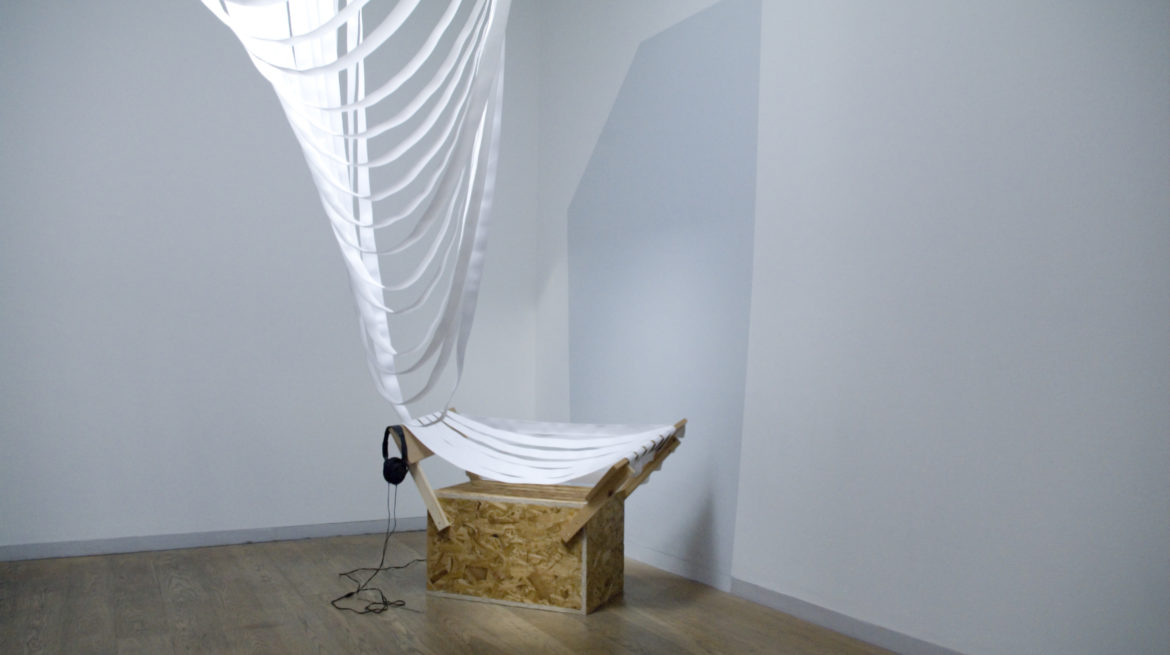 A sculptural intervention into the Gallery’s skylight shifts the experience of the room and disrupts usual patterns of seeing. Alongside this piece, there are a series of structures that incorporate images sourced from newspapers, magazines and the internet. The art work is continuously disassembled and rebuilt into new forms throughout the duration of the exhibition.