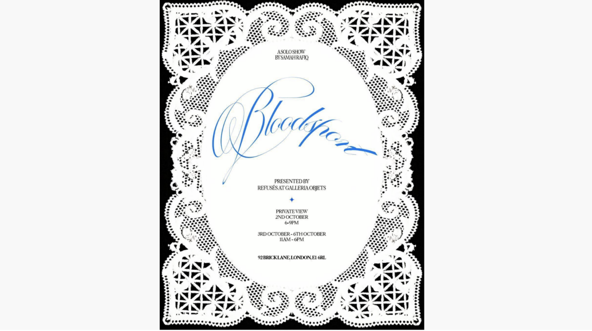Presented by Refusés, Bloodsport is the first solo show of London-born artist Samah Rafiq (b. 2000), whose practice explores how consumer imagery and media symbols shape our psyche, between the sacred and the profane.