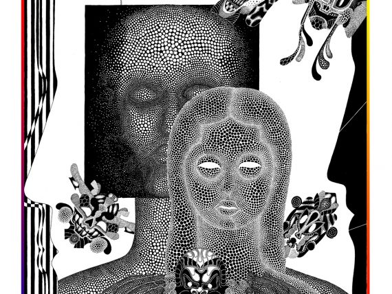 The hallucinogenic creation of worlds — and worlds within worlds — that is compounded into a single drawing, is both Pramatorov‘s style and signature, as the artwork of his father’s will attest. Citing the artist’s experience of growing up immersed in the incidental details of his father’s magical, illustrated worlds, ‘Fractals‘ also features a select number of pieces by Pramatarov’s father. In so doing, the exhibition additionally explores an inter-generational artistic impulse, and the way time and context can so dramatically influence a work of art.