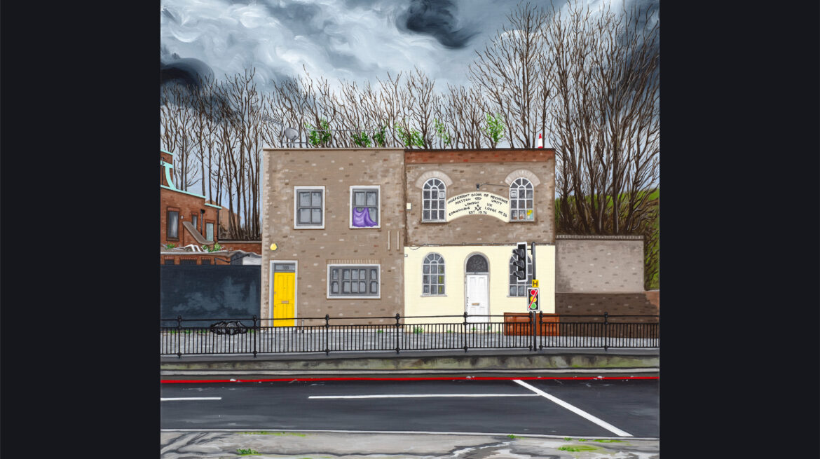 The city is a floating idea as much as a physical zone of bricks and mortar; the dreams and nightmares of its inhabitants loom in the air like traumatic rainclouds threatening to break. Stephen Harwood’s paintings seek to imbue urban London with some of this psychic tension, and so redefine what we see as mundane. The buildings in these paintings appear to glow from within whilst they are marked without with a confusion of gaudy sigils. Harwood’s work is concerned with a London that exists beyond the rhetoric of politicians and the calculations of financiers but which is scarred by their machinations. It is a London that shimmers with a makeshift intensity, and gestures towards a haphazard mythos.