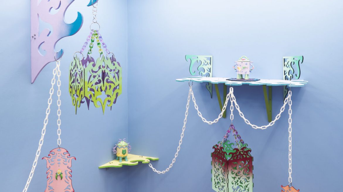 Well placed within the experimental and intimate Commonage basement space will be a series of sculptures by Hannah Lim titled ‘In the Margins’. Lim is a British artist of Chinese-Singaporean descent. Her intricate sculptures merge furniture and calligraphy taking inspiration from both Eastern and Western cultures whilst being recontextualised in a strikingly bold and contemporary style. This culminates in a playful installation containing fantastical yet subversive narratives.