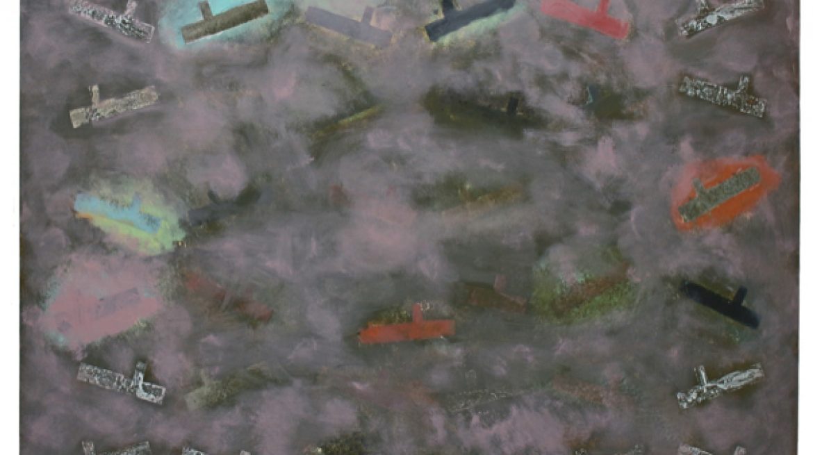 Ships display a desperate semaphore, ships as metaphor and carriers of frail humanity, sinking fast. Growing up in Liverpool the sea is a constant subject, he follows it as it ebbs and flows in and out of consciousness, absorbed by the distant look to the horizon as well as its endless assault on the shore.