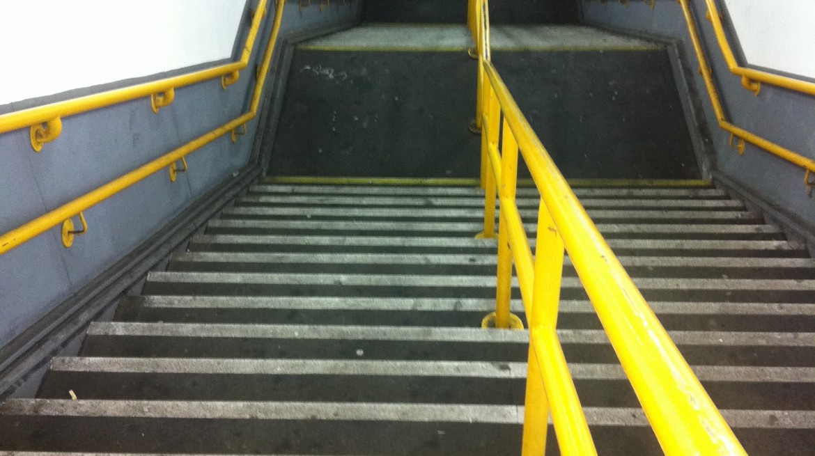The gallery is a stair cupboard underneath Cambridge Heath Railway Station staircase. This exhibition space challenges participating artists to create work within its architectural restrictions.