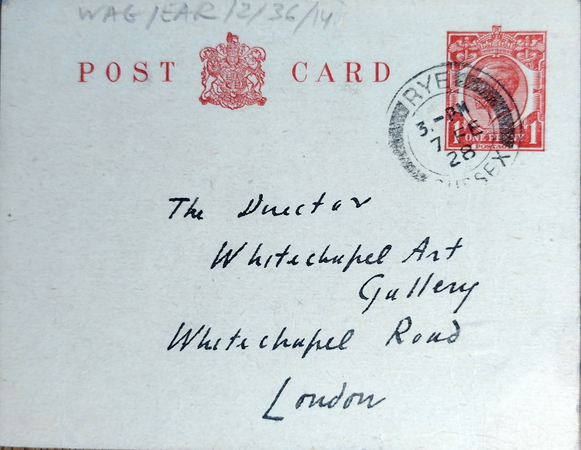 Learn > Whitechapel Gallery Archive > Archive Holdings > Early records > Paul Nash postcard 7.2.1928-2