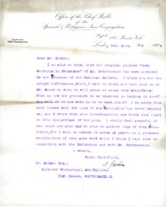 Learn > Whitechapel Gallery Archive > Archive Holdings > Early records > WAG_EAR_4_13_3 Letter from Chief Rabbi to Ch.Aitken -1906-1