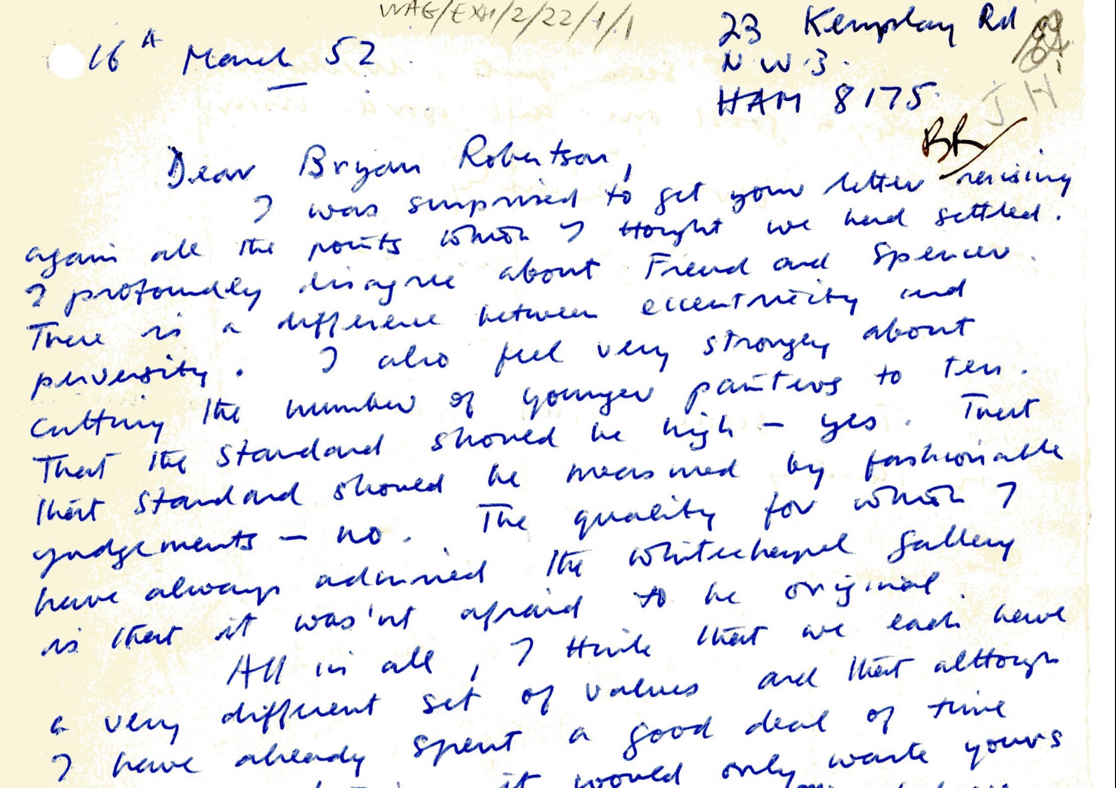 Learn > Whitechapel Gallery Archive > Archive Holdings > Exhibition files > exh_2_22_1_1-Looking forward- Letter J.Berger to B.Robertson 1952 (1)
