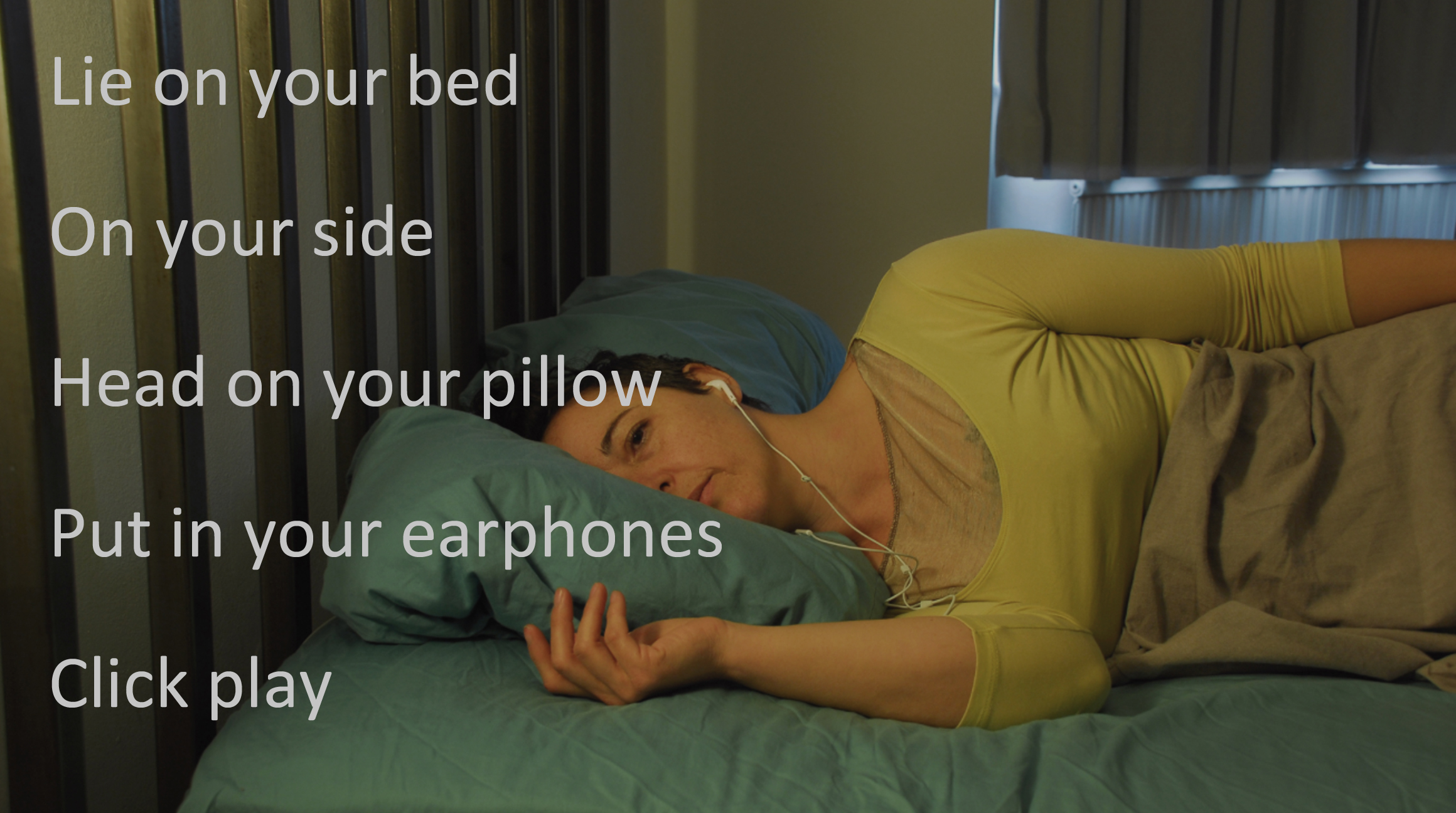 The listener is invited to lie in the comfort of their own home and listen via earphones to fully experience Homebody.