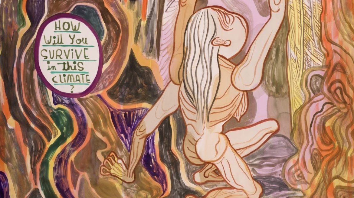 For her winning Max Mara Art Prize for Women commission, Emma Talbot questions deeply rooted positions of power, governance, attitudes to nature and representations of women through an acutely personal lens. The work takes as a starting point Gustav Klimt’s painting The Three Ages of Woman (1905), which features a naked elderly woman standing in apparent shame. In the final artwork, comprising two 11-metre-long free-hanging silk paintings, a life-sized sculptural figure, drawings and an animation and developed during her residency, Talbot re-framed the older woman as a figure with agency, capable of overcoming a series of trials similar to The Twelve Labors of Hercules. Through her modern-day trials, the woman reconstructs contemporary society, tackling some of the most pressing issues of our time.