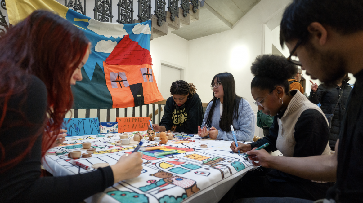Following months of conversation, walks, banner-making, and experimentation rooted in play and storytelling, the group curated a day long takeover on 9 December 2023 of Whitechapel Gallery’s foyer, presenting their collective imaginations of Our Future Libraries.