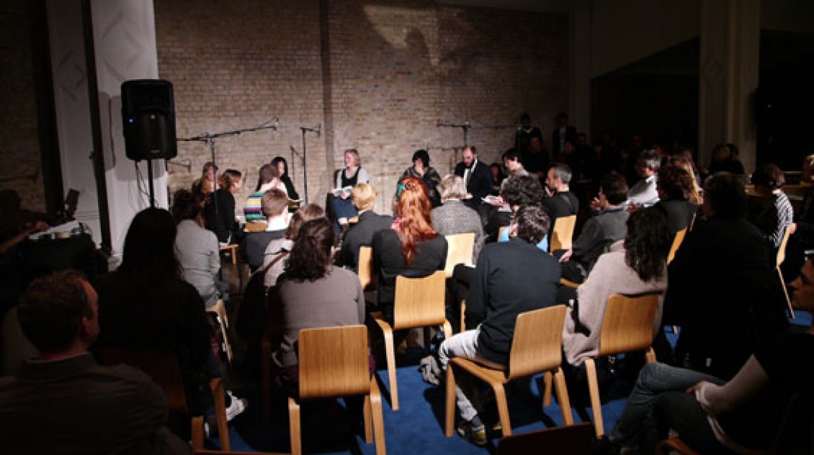 Showcasing UK artists and writers, this parley-based event speculated on the materialisation and dematerialisation of art writing through newly commissioned works, together with readings drawn from open submission. The event was hosted by Maria Fusco with Book Works and structured around issue three of The Happy Hypocrite, themed ‘Volatile Dispersal: Speed and Reading’. A specially produced publication is available on the day, published by Book Works.