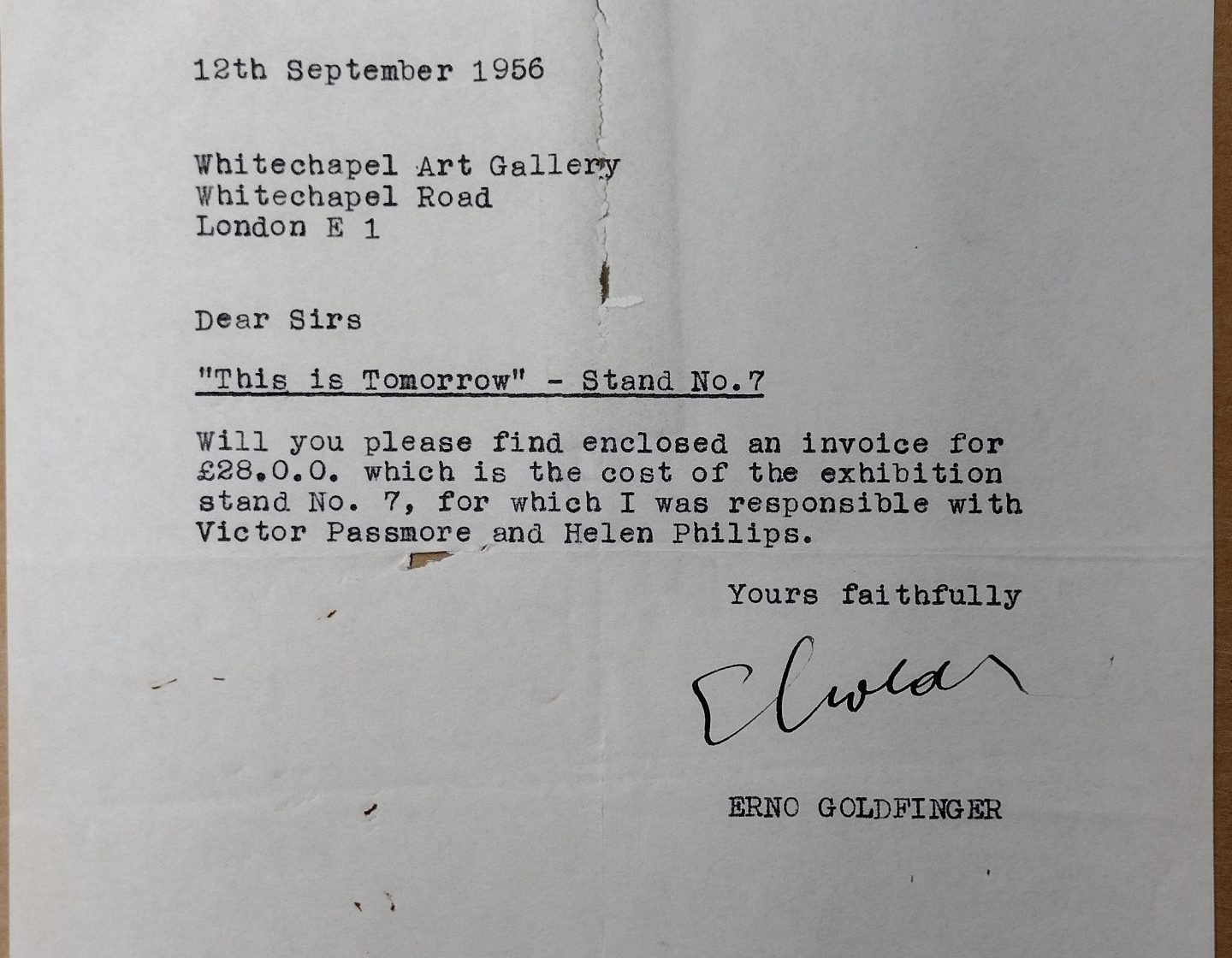 EXH_45 - ThisIsTom_1956_Erno Goldfinger Invoice - Whitechapel Gallery